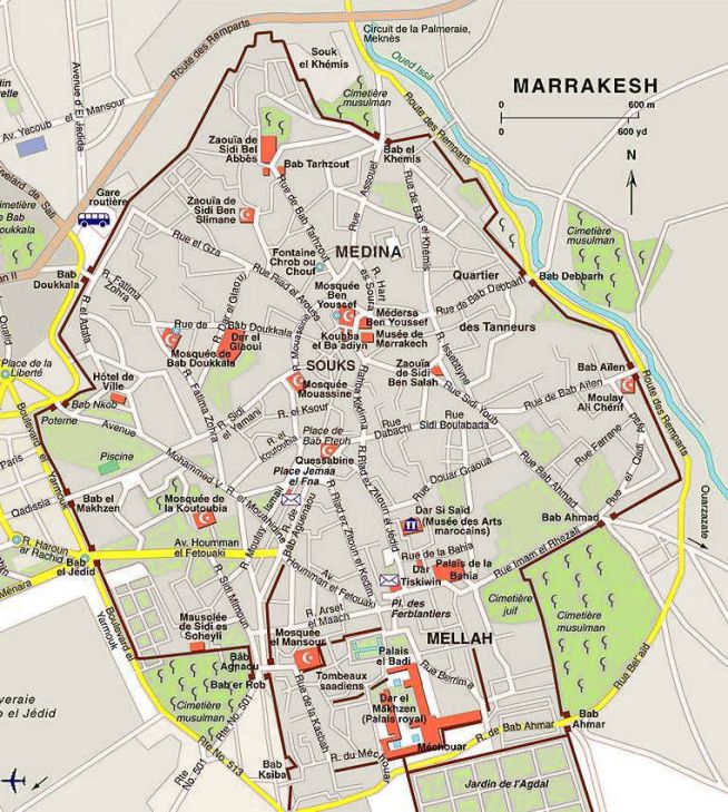 C'est une grande porte Almoravide, massive, impressionnante, collée à deux tours carrées près de la gare routière et qui donne accès au Nord de la Médina.